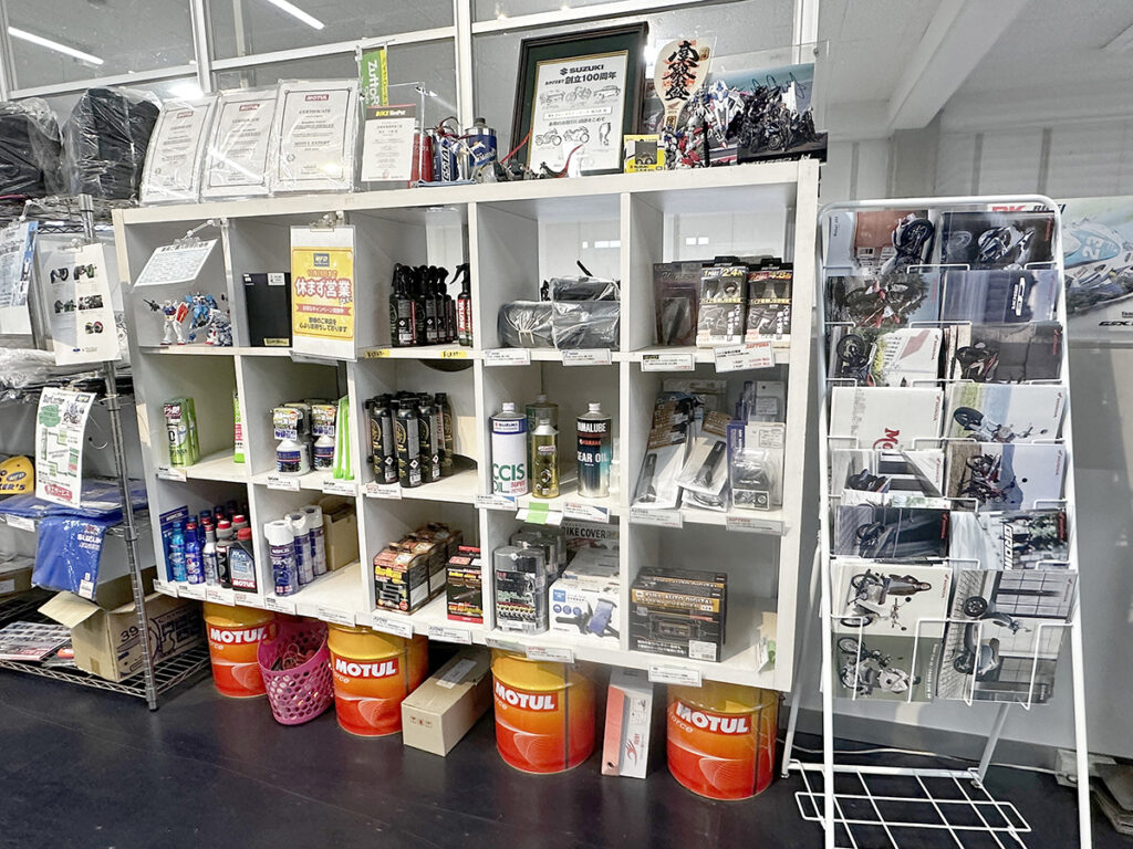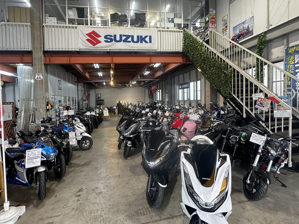新車はスズキ(全排気量)、ホンダ(250cc以下)のほか、ファンティック、プジョー、ランブレッタ、GPXといった外車を取り扱っていて、中古車は国内外すべてのメーカー・全排気量が対象。