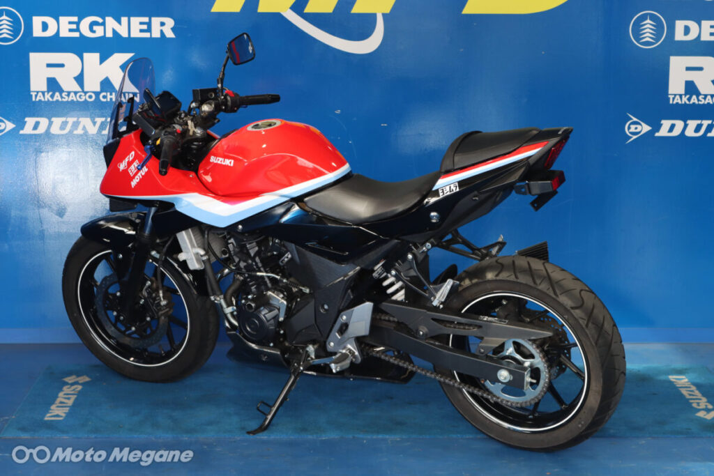 今回紹介したGSX250RベースのKATANAは、2通りの手段で入手可能だ。ひとつはアッパーカウル、スクリーン、メーターカバーなどをセットにしたカスタムキット(22万8000円・税込/黒ゲルコート仕様)。もうひとつは、そのキットをベース車両に組み込み、塗装まで施したコンプリートモデル。用途や予算に応じて選択できる柔軟な展開は、ユーザーにとって大きな魅力と言えるだろう。
