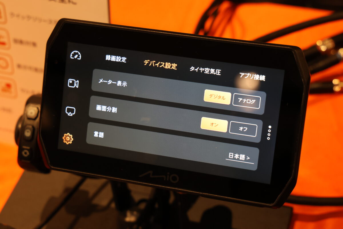 タッチパネルのため、メーター表示の切り替えや画面分割のオン/オフといった設定の変更もしやすい。またタイヤ空気圧やタイヤ内の温度を計り、設定値から外れると警告を出す「タイヤプレッシャーモニター機能」も追加オプションで用意される予定だ。