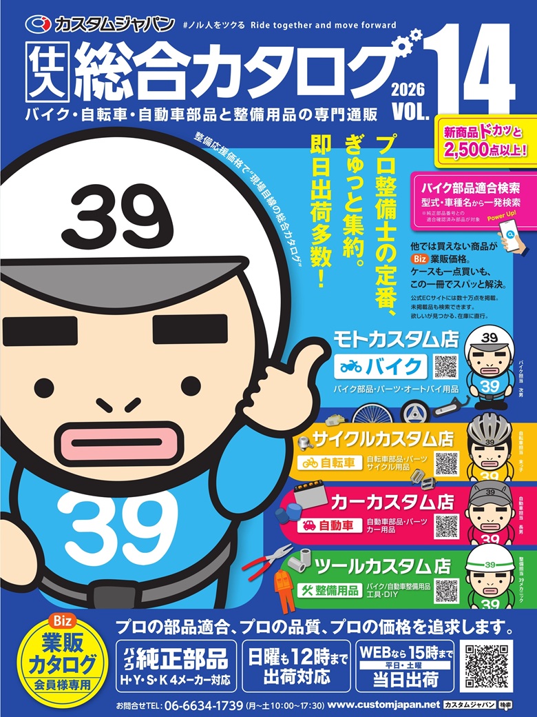 これがカスタムジャパンの業販用仕入れカタログ。あくまでバイクショップやバイク用品店が商品の仕入れの際に活用するもので、一般ユーザー向けではない。カスタムジャパンをご存じの方も、このイメージが強かったはずだ。