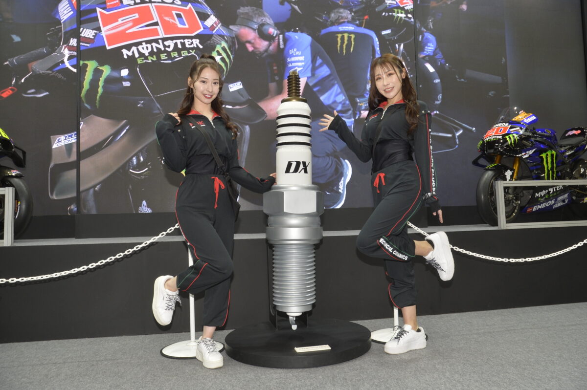 世界最高峰のバイクレース・Moto GPで活躍するレーシングマシンにもNGK スパークプラグが採用されている。NGK スパークプラグブースではMoto GPに参戦中のHondaとYAMAHAのレーシングマシンも展示され、来場者の注目を集めていた。
