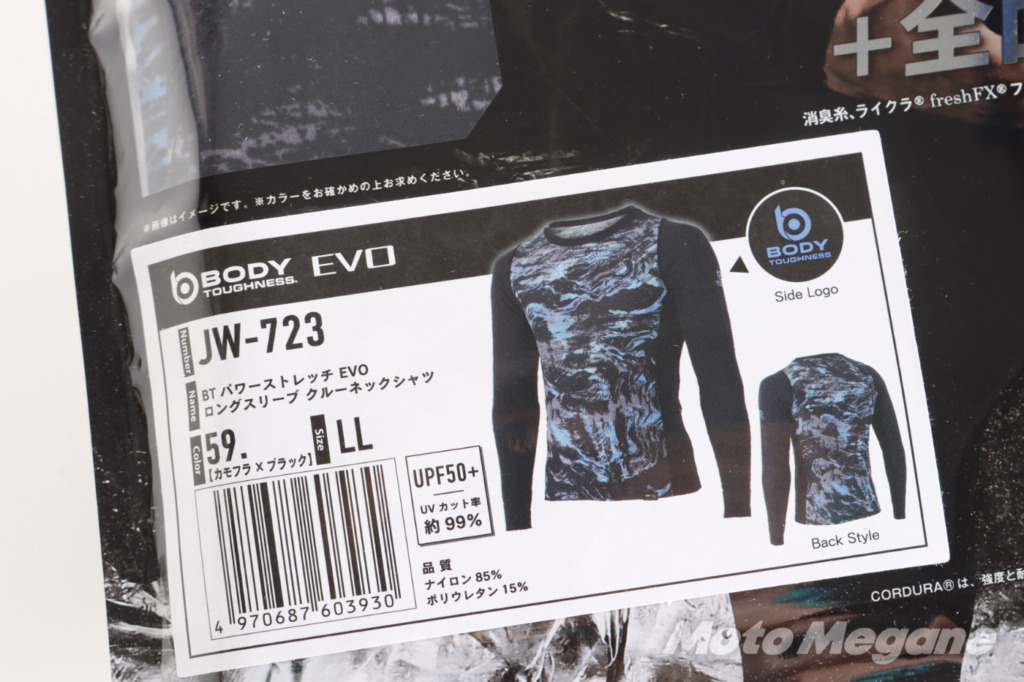 そこで、おたふく手袋の 高機能アンダーウェアブランド「BODY TOUGHNESS」の中でも最高レベルの冷感・速乾・消臭機能に優れた「POWER STRETCH EVO JW-723」を試してみることにした。