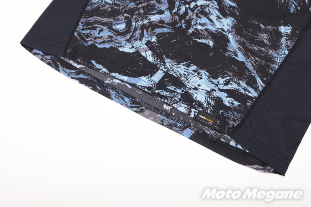 背中側の裾が長くなっているおり、ズボンから出にくくなっている。バイクに乗るときは少なからず前傾姿勢になるので、これはライダーにも嬉しいポイントだ。