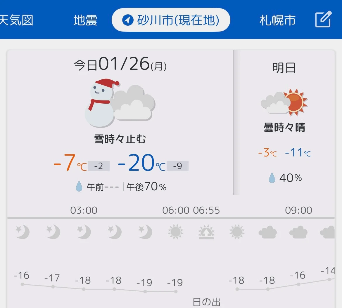 ナトリウムイオンバッテリーには「自然放電しにくく寒さに強い」という素晴らしい特徴がありますが、通常この手のバッテリーの検証記事って、本州に住んでる人が「はぁ〜い、マイナス10度でも大丈夫でぇ〜す(カタログ読んでるだけ)」とか、「真冬に検証したけど問題なかったです(気温2〜3度)」ってのが多かったりしますが…だがしかし!こちらは冬の北海道!つまりはガチ of ガチなわけです。