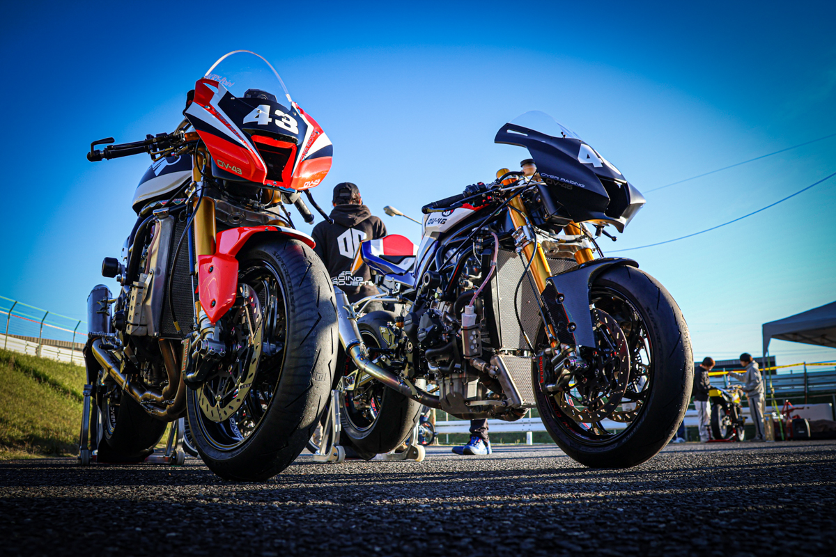 筑波サーキットで開催されている、旧車と鉄フレームマシンを中心とした大人気イベントレースの「テイスト・オブ・ツクバ」。その最高峰となるハーキュリーズクラスで戦うために開発されたオーヴァーレーシングのオリジナルフレームマシンが、OV-43およびOV-46だ。2023年から実戦投入されてきたOV-43はカワサキのニンジャ ZX-10R、2025年にデビューしたOV-46はホンダのCBR1000RR-R ファイアーブレードのエンジンを搭載。つまり、最高出力200馬力オーバーのモンスターマシンだ。