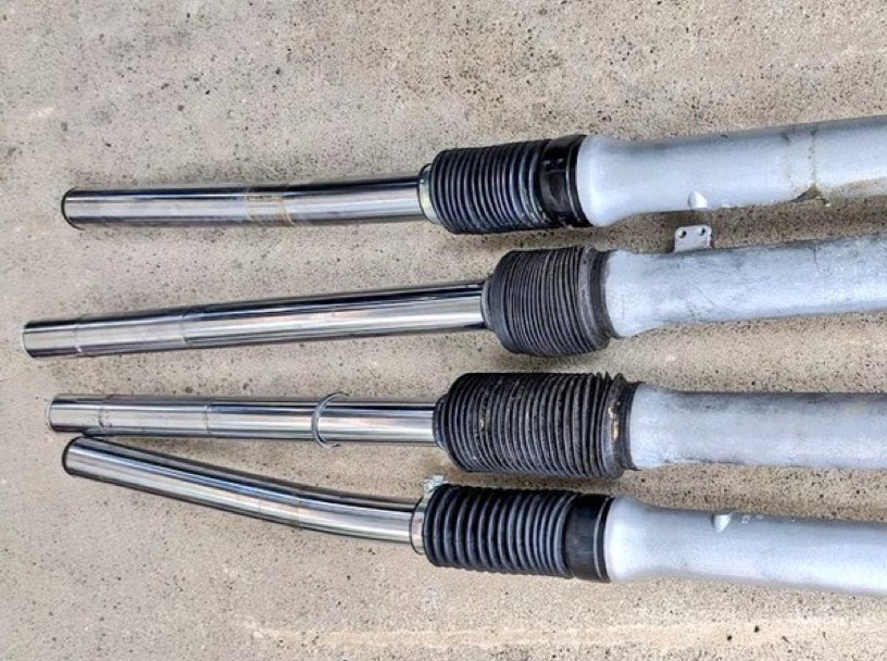 バイクのフロントフォークに使用される「インナーチューブ」。メンテや洗車をサボるとすぐにサビが浮いてしまう上、転倒によってダメージを受けやすいデリケートなパーツだ。