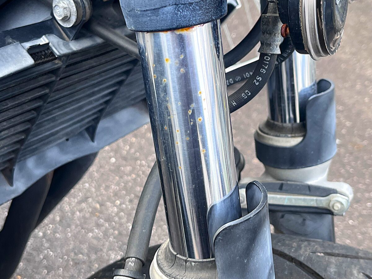 フロントフォークのインナーチューブは何かとダメージを受けやすい。