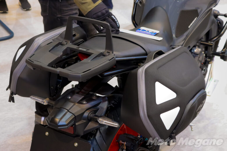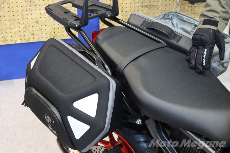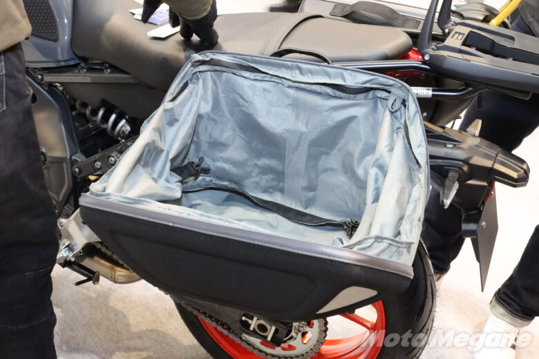 左がバッグ未装着で右がバッグ装着状態。車体デザインを犠牲にすることなく積載量を拡大できる。
