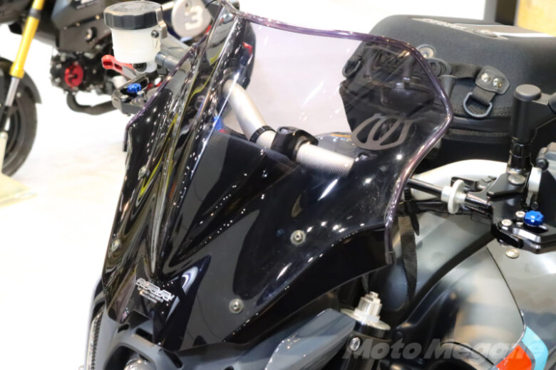 ウィンドプロテクションを向上させ、ツーリング時の疲労を軽減させるMRA「スクリーンレーシング」を装着。ドレスアップ効果も高い!