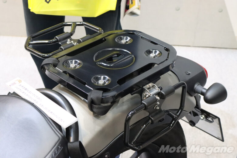 コンテナの積載ベースとなるのが「profest(プロフェスト) / RotopaXサイドマウントキット」。サイドバッグの取り付けにも利用できる。