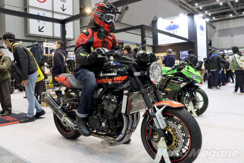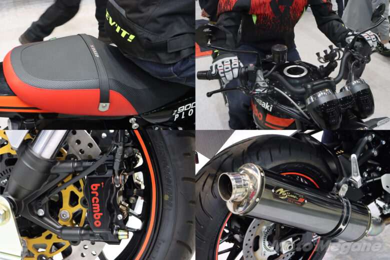 ブレンボのラジアルマウントキャリパー、ラジアルマスター、ブレーキローターをセットで装着。EFFEX ゲルザブSを内蔵したスポーツシート、ローダウンリンクキット、Nojima GT手曲 DLCチタンフルエキゾーストなどZ900RSでスポーティな走りを楽しみたい人に向けたマシンに仕上がっている。