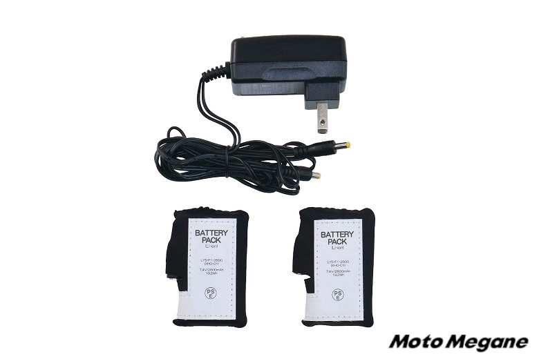 電源となる専用のリチウムポリマーバッテリーは専用ポケットに収納され、充電器も付属する。フル充電状態ならスイッチ赤色の40℃で約2時間、白色の35℃で約4時間、そして青色の25℃なら約6時間も発熱させることができる。なお、予備バッテリー単体での購入も可能だ。(1個の税込価格2,860円)