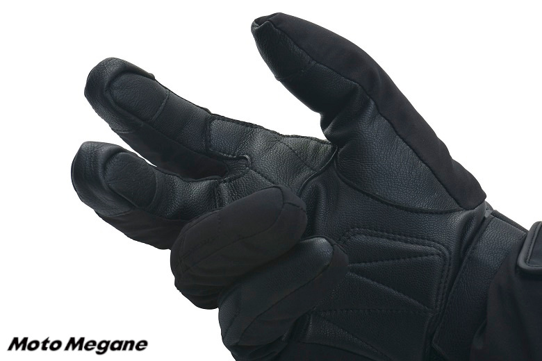 電熱ヒーターを装備することで手指をしっかりと温め、真冬の冷気にさらされながらでも快適なライディングを追求できるライディンググローブ。最大の特徴は熱源素材として新採用されたマイクロファイバーで、従来製品に採用されているニクロム線熱源と比べると柔軟性に優れているので断線しにくいのだ。