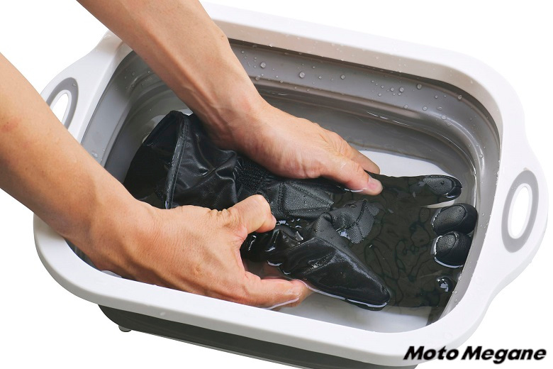 ツーリングやキャンプで使用すれば当然汚れてしまうわけだが、バッテリーを外してグローブ本体のみの状態ならば手洗いでの洗濯もOKだ。(※洗濯機、脱水機、乾燥機は使用不可。手絞りも不可)
