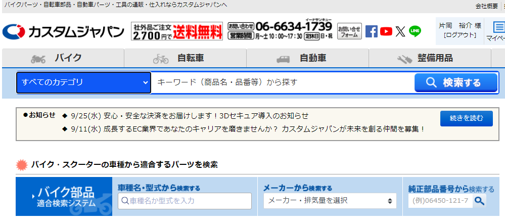 全国のバイクショップに二輪用パーツを供給する大阪の企業「カスタムジャパン」。