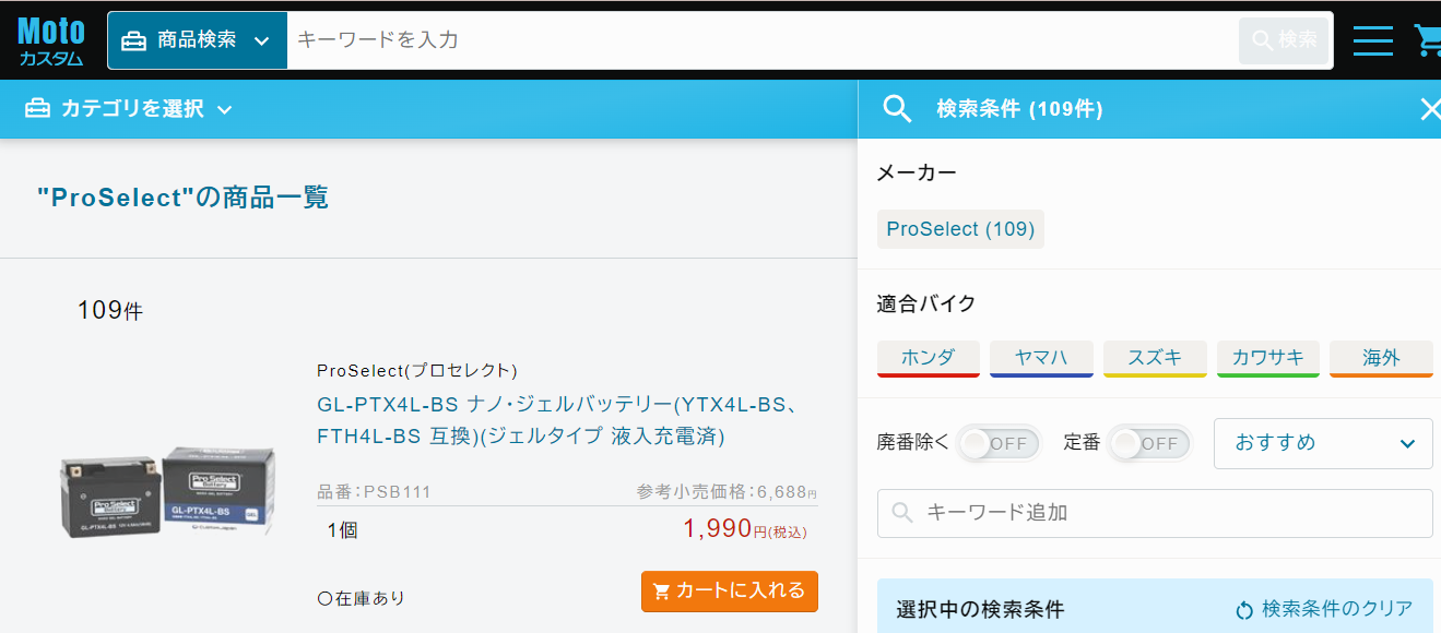 カスタムジャパンなら欲しいバッテリーがすぐ見つかる!