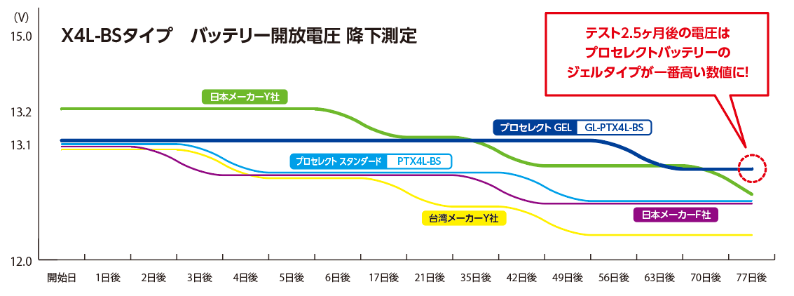 また、きわめて放電しにくく、長期間保管しても高いエンジン始動能力を保ってくれる。