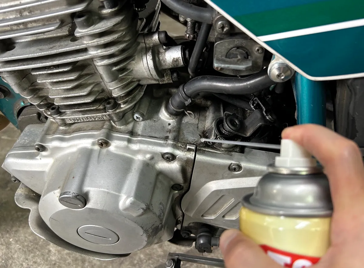 一般的に「ブレーキ&パーツクリーナー」ってのは主にバイクの金属部品やブレーキパーツ周辺に付着した油汚れやグリスなどの頑固な汚れを落とすための洗浄スプレーで、例えばバイク屋さんがオイル交換をする際に周辺にシュシュ〜っとふりかけているやつがまさにブレーキ&パーツクリーナーです。