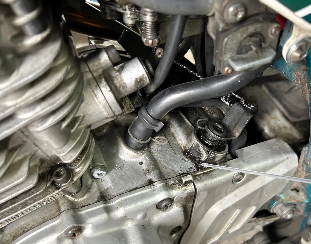 さて、セローちゃんのどこを綺麗にしようかな?ってことで、まずはパッと目についたエンジン周りの汚れにロックオン!してみたところ…これが見た目に結構頑固そうな汚れなので…初っ端からプレミアムを投入させていただきました!