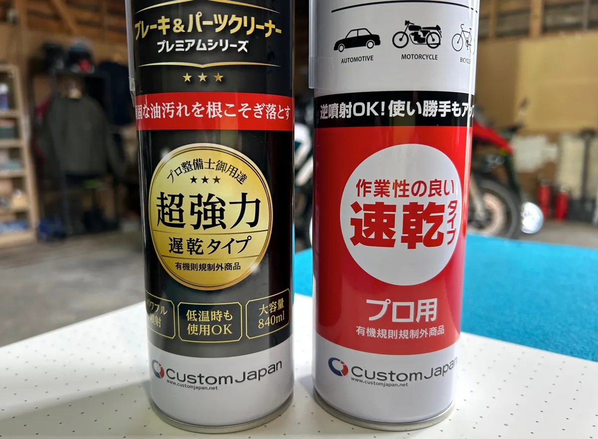 ちなみに実はベーシック(個人的な呼び方)なブレーキ&パーツクリーナーの他に、上位グレードの「プレミアムシリーズのブレーキ&パーツクリーナー」もあるので、せっかくなので今回は2つ同時に試しちゃいました♪