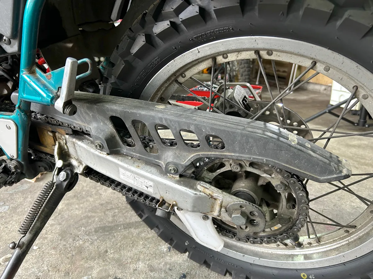 お次はもうちょっとベーシックの洗浄力を試したいので、頑固な汚れが目立つ場所の代表格「チェーン付近のスイングアーム」をキレイキレイしてみました!
