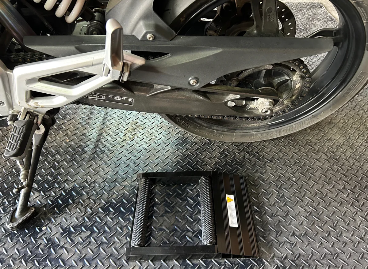 そのあまりに露骨すぎるネーミングはさて置き…これはギアをニュートラルに入れた状態で、後輪をスタンドに乗せるだけでクルクルできる優れものなんです!