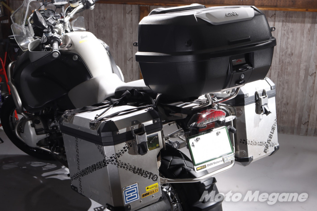 サイドとトップケースを装着したフルパニア状態のGSには当然3BOX対応の「Type-T」を使用した。
