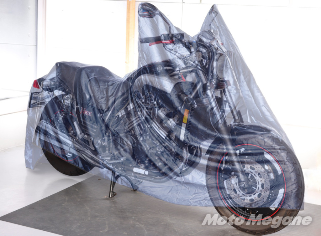 絶版車なのであまり参考にならないかもしれないが、ヤマハVMAX1200にもかぶせてみた。VMAX1200はかなり大きいので「Type-S」ではサイズが足りず、アメリカン向け「Type-C」がぴったりだった。