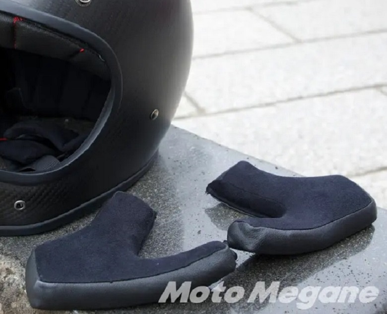 内装は通気性の高いメッシュ素材とラムスキンを採用。アクセントに赤いステッチを入れることで、快適な被り心地と高級感を両立している。チークパッドは外して洗うこともできるので、清潔さを保てるのも嬉しい。