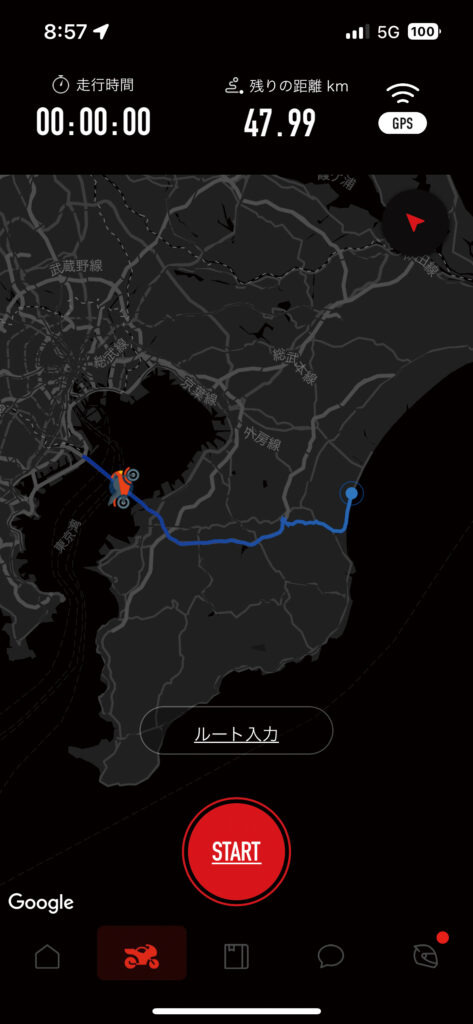 アプリ内のツーリングコースを選べばルート設定やログの記録も簡単に出来る!