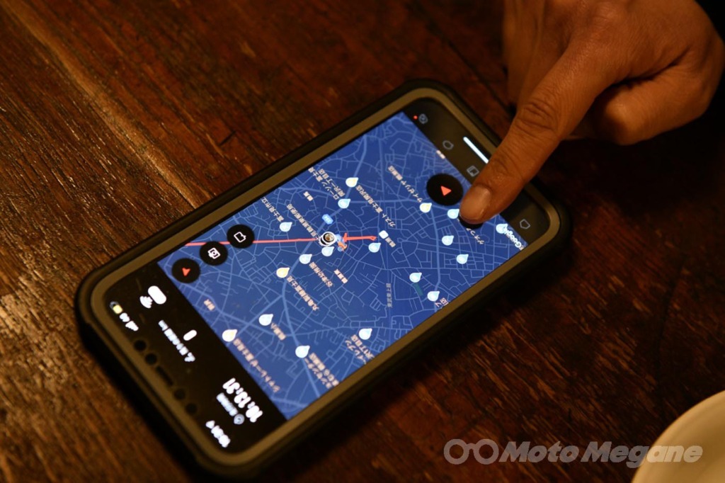 それだけで走ったルートが自動的に地図上に記録されていきます。立ち寄ったスポットではアプリ内で写真を撮れば地図上に埋め込れるので、初めて使った私でも簡単にツーリング日記が保存できました。