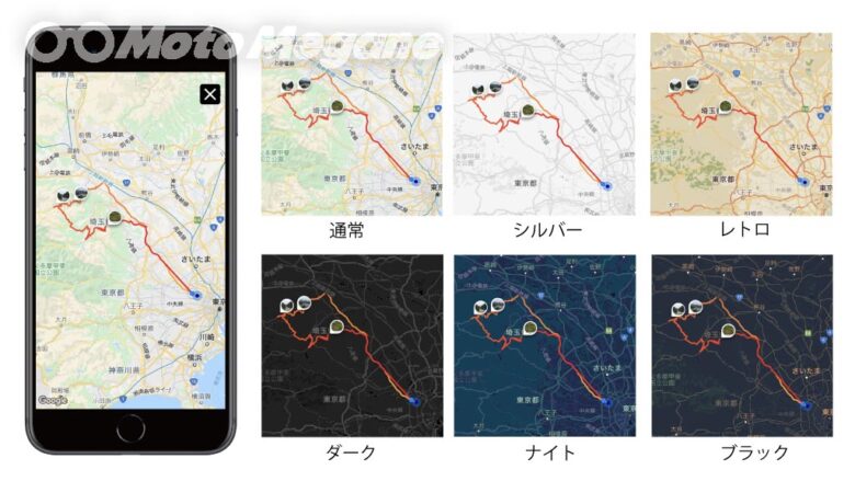 マイページの右上「ナット」マークをタップして設定から「マップスタイル」で変更可能。
