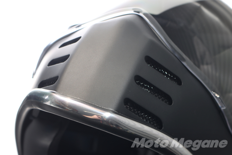 デザイン上のアクセントにもなっている口元が張り出している分、顎からの風の侵入を感じました。冬場はネックウォーマーなどの着用がおすすめ。