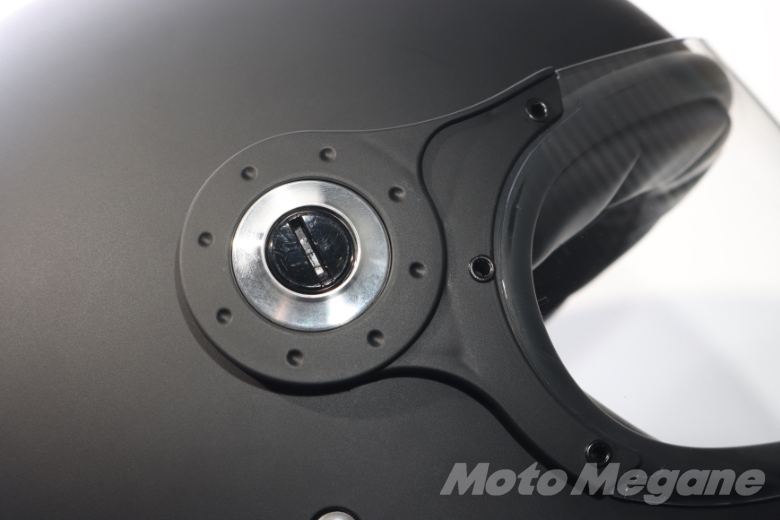 シールドはこのタイプのヘルメットにありがちな無段階に動く仕様ではなく、しっかりクリック感を伴って数段階に止まるのでシールドを上げた状態をしっかり維持できますし、ピタッと閉じるので走行時の風切り音も少なめ。