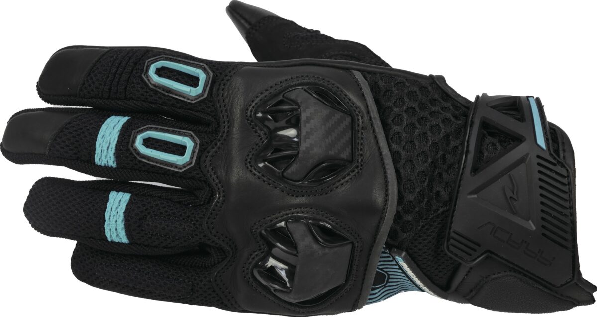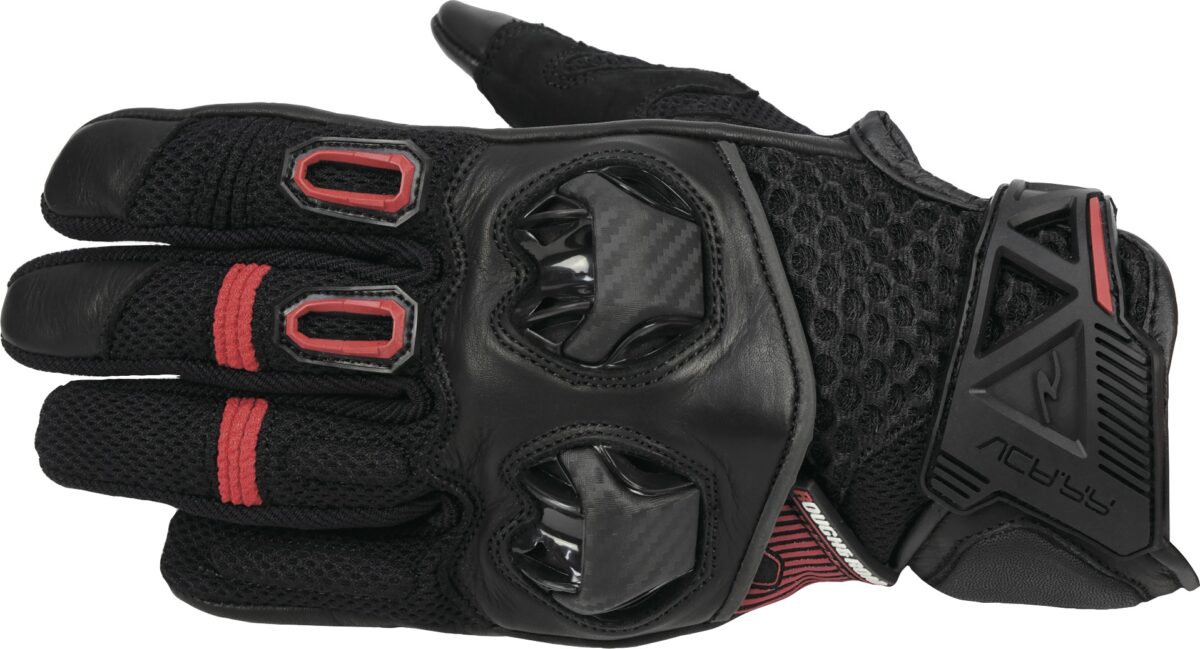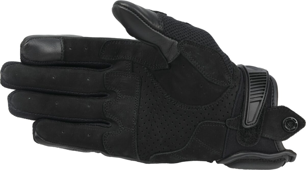 ライディンググローブとしての高いプロテクション性能と涼しさを高次元でバランスさせている「ジェットエアアドベンチャーメッシュグローブ」。甲側にはポリエステルメッシュとラッセルメッシュの2種類のメッシュを効果的にレイアウトすることで涼しさを追求。一方、プロテクション機能に目を向けると、ナックル部分には動きやすさや装着感の軽さのために2ピースタイプの“フーロティングハードナックルパーツ”を配すとともに、手首をしっかりガードするカフデザイン。指先のプロテクターとナックル部分のプロテクターは空気を通す構造になっている。このほか、掌側は耐久性に劣る合成皮革ではなく汗や摩擦に強い牛革を使用することでグローブとしての耐久性も高めている。