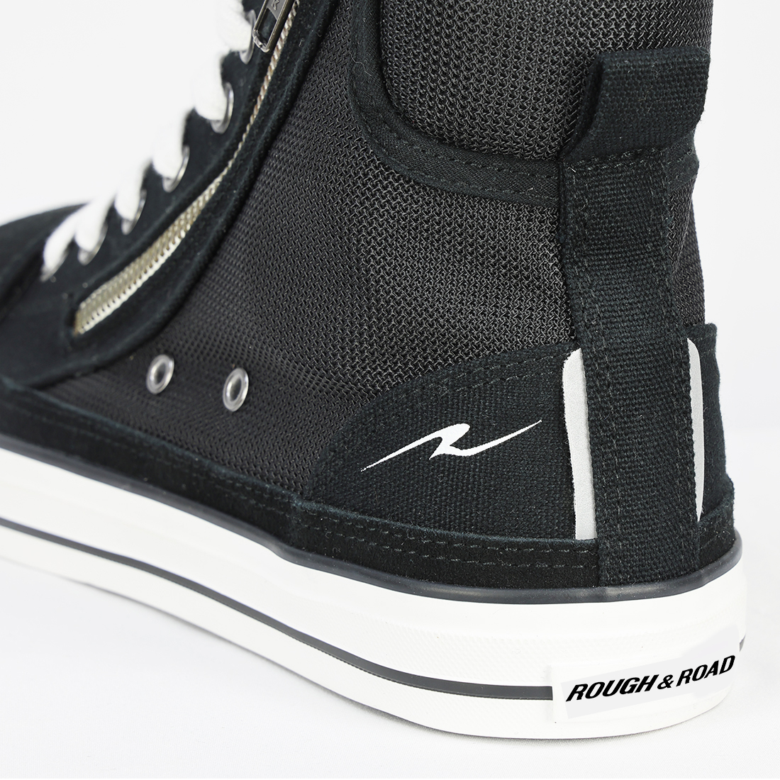 「ラフエアスルーRDスニーカー」は、バイクを降りたあとの街歩きにも使いやすいカジュアルなスニーカースタイルでありながら、インサイドとアウトサイドに大きなメッシュッパネルを設けて通気性をアップ。さらに内部の空気を吸い出すような効果を狙ってメッシュパネル下側には2つのハトメ状のベンチレーションホールをレイアウト。ライディングシューズとしての機能も充実しており、バイクを傷付けず脱ぎ履きをしやすくする“アウトサイドワイドジップ”や、左足のつま先には“高耐久レザーシフトパッド”。このほか、歩きやすさを考慮して2025モデルからよりグレードの高い“立体カップインソール”を装備している。