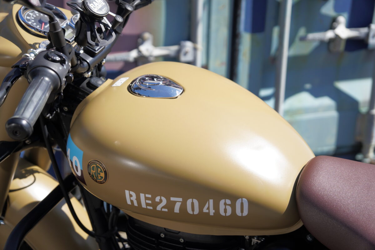 タンクのデザインも気に入っていて、同じクラシック350でも、この番号(REから始まる個体番号)は1台1台違うんです。それが唯一無二な部分で、自分のバイクの特徴になっていますね。