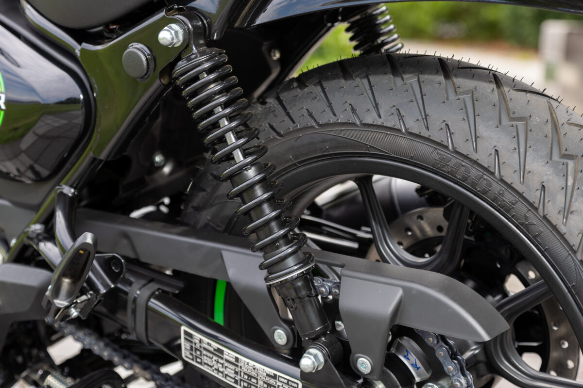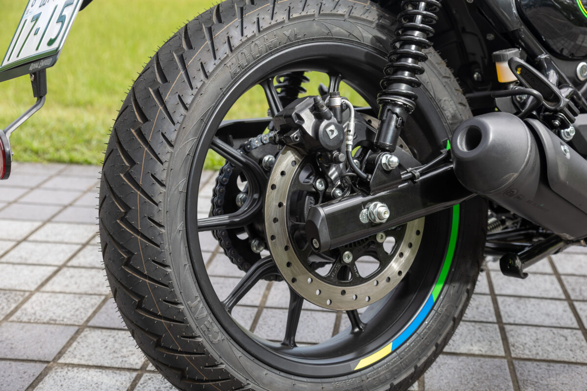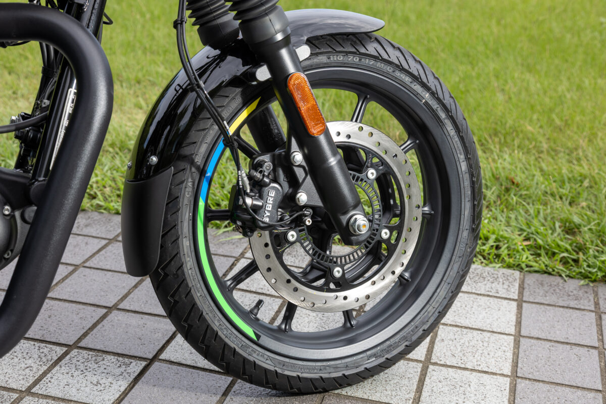 フロント17インチ/リア17インチのホイールは、安定感と軽快さを両立。街乗りでもツーリングでも使いやすいバランスに仕上がっています。タイヤは前後ともにチューブレスを採用。