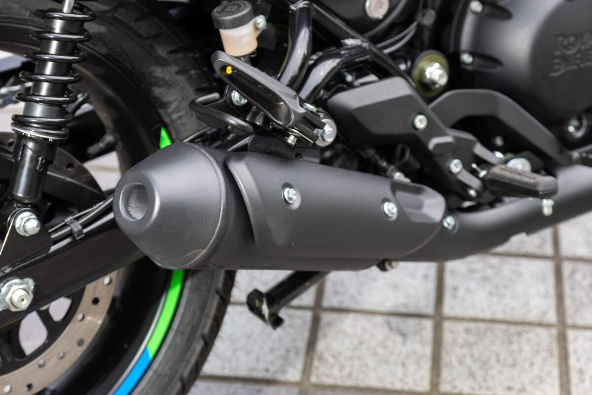 あと特筆すべくは、アクセルを開けるたびに響き渡る歯切れの良いマフラー音です。単気筒のほどよいドコドコ感が楽しめて、存在感も主張できます。でも、単気筒のドコドコ感が強く出るタイプのバイクって、体にもドコドコと振動が響いてくるイメージが強いです。往年のバイクらしさが感じられて心くすぐられますが、ずっと体感してるとなんとなく疲れてくるんですよね。長時間乗ってるときは、その振動が疲労になる場合もあったりして……。