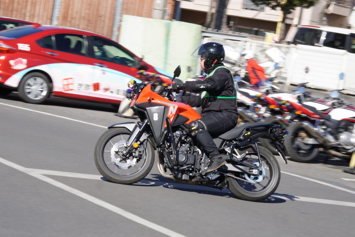 現在、車のMT免許の教習中というしろくまさん。なんでもお父様が乗り物好きだそうで、“早く免許を取れ!”と急かされるように武蔵境自動車教習所へと入校。「この流れだとバイクの免許も取れと言われるハズなので、このイベントを見かけてバイクに跨りにきました!」とのこと。大型バイクのスーパーメテオ650を跨った印象は、「やっぱり大きいですね。でも重いぶん安定している気がします。これなら私でも乗れそうな気がします! それに生まれて初めて自分でエンジンをかけさせてもらいましたがヤバいです!!」と興奮気味。もう、いっそのこと大型自動二輪免許まで取っちゃう!?