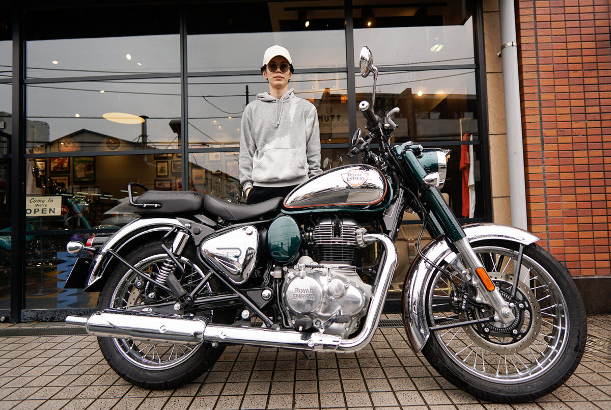 デザインとカラーリングで一目惚れしたという、クラシカルな造形とマッチするキシモトさんの佇まいは、クラシック350が日常に「完璧な足」として存在することを感じさせてくれた。
