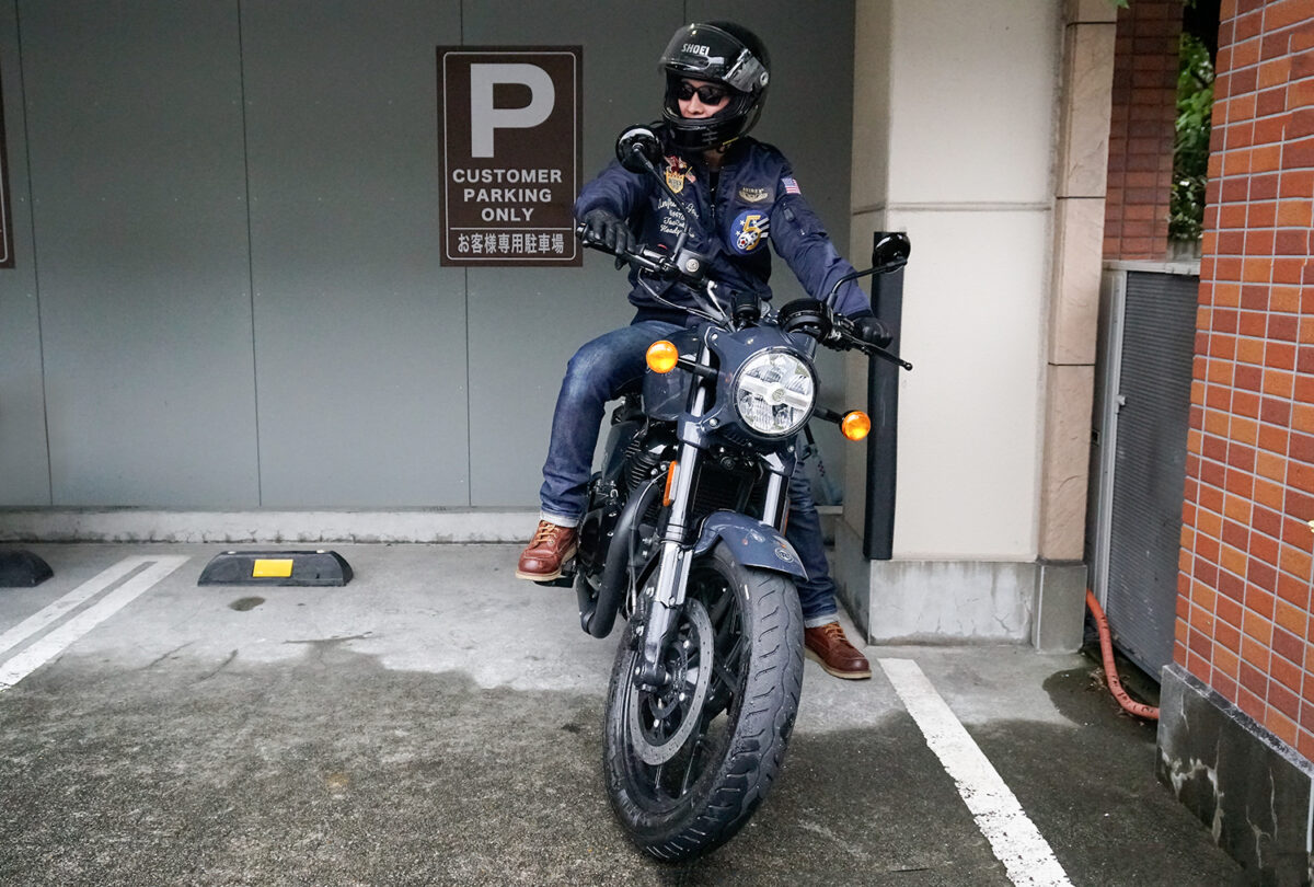 「国産車の足着きと比べて、外車なのに本当に足着きがいいんですよ!」という言葉通り、自然体で跨るうっちーさんの後ろ姿は悠然としてキマッていた。