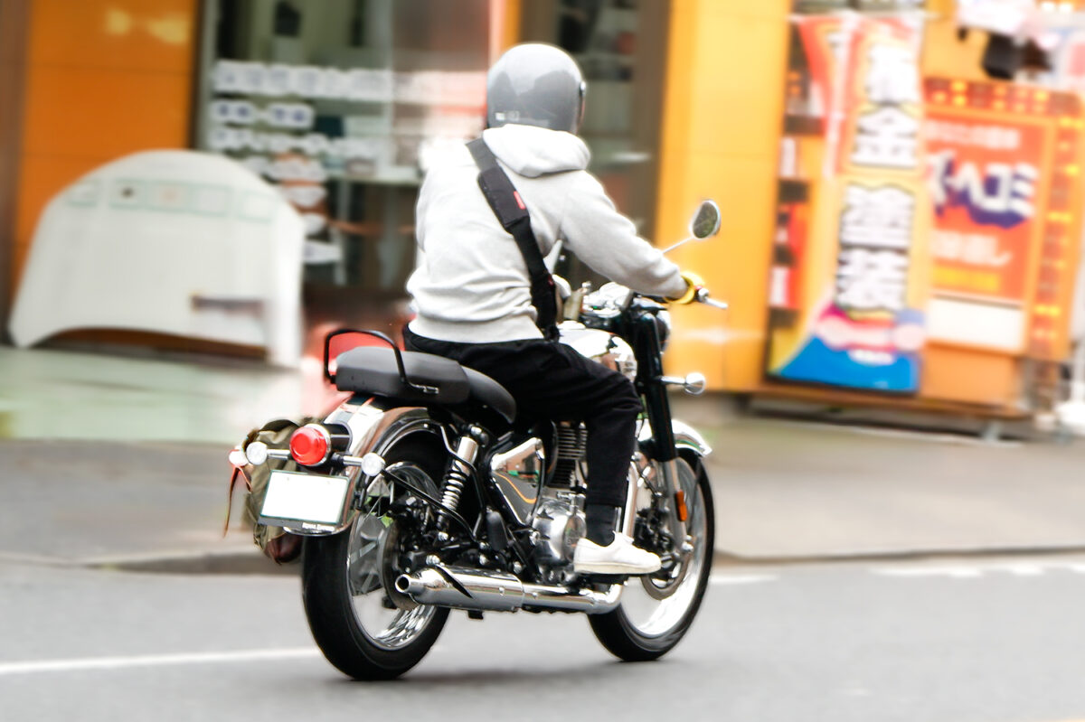 クラシック350は加速がスムーズで、気持ちよく走れるという。また、移動手段ゆえに、一番信頼できる「ノーマル状態」で乗りたいというこだわりも。