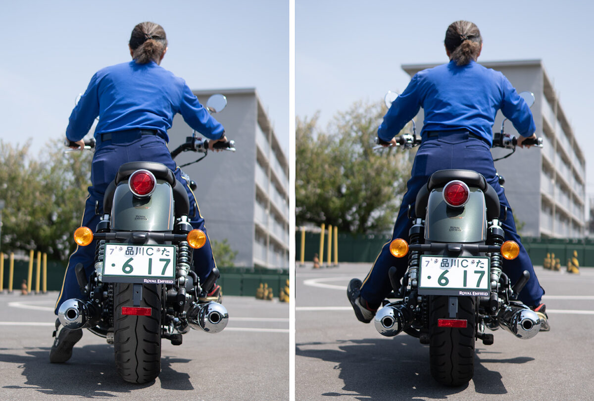 優さん跨りには不安はありません。後方確認など体勢を変えるのも問題ありません。でも、普通に座るとステップにも足が届かないので、足の置き場がなかったですね(笑)