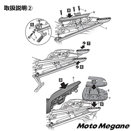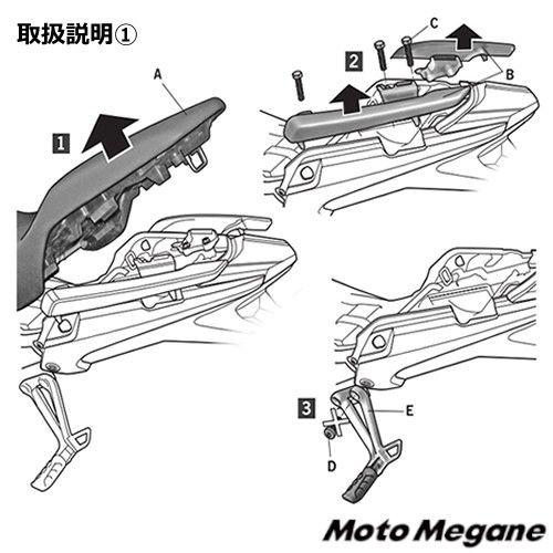 フィッティングキットを車体に装着するにはシート、グラブバー、そしてタンデムステップを外し、左右別体になったフィッティングキットをそれぞれグラブバー&タンデムステップと共締めするだけでOK。そして、ベースプレートを左右フィッティングキットに橋渡しするように装着すれば完成。これで用途や好みに合わせたトップケース&TERRAを使用することができる。