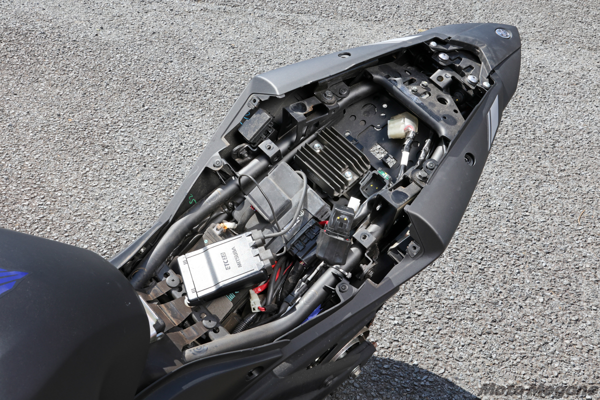 このリアフェンダーを取り外して再び装着する作業がやや難しく、前後シートやシート裏側の配線コネクターなども着脱しなければならないので、トップマスターフィッティングキットの装着は1時間程度の作業となる。とはいえ、整備などでバイクの構造や工具の取り扱いになれていれば、作業そのものはまるで難しくない。自分のスキルによって、DIYするかショップに装着を依頼するかを決めたい。