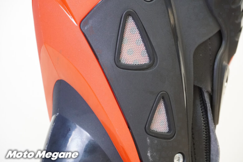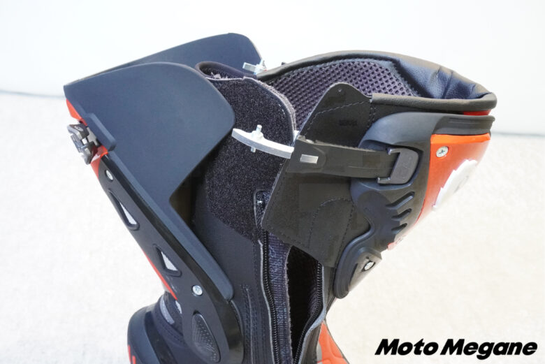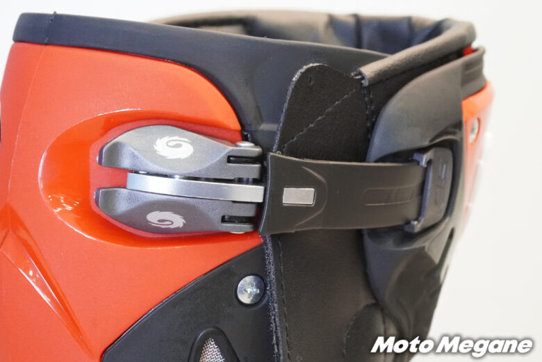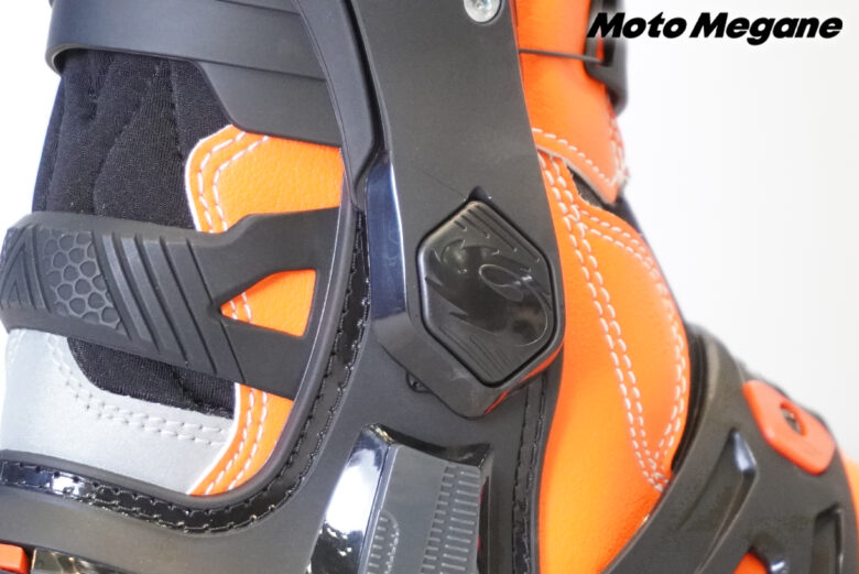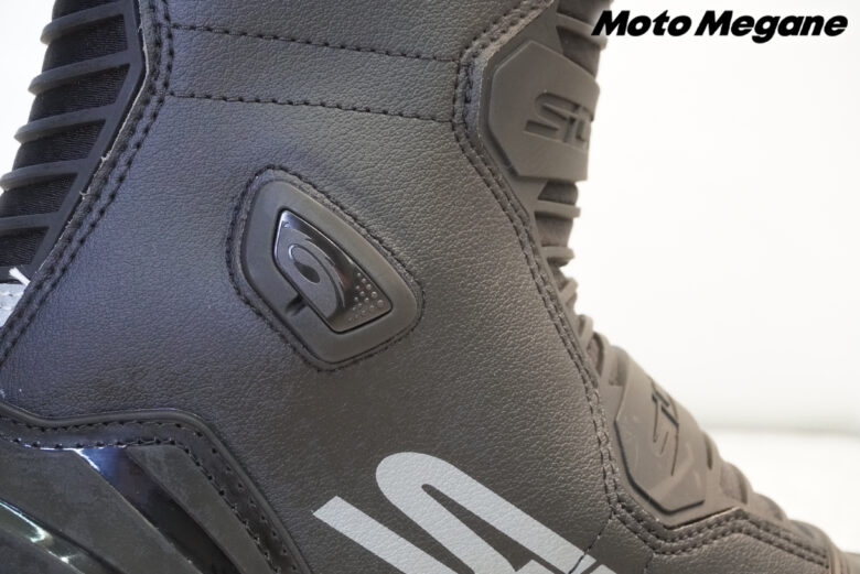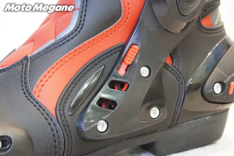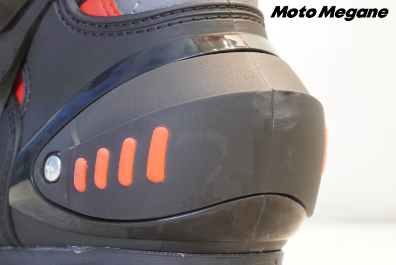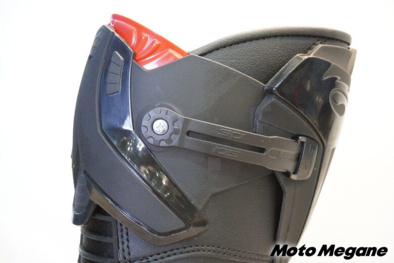 ふくらはぎ部分のストラップはサイズの調整が可能で、日本人ライダーの足にもピッタリとフィットさせることができるブーツには各部プロテクションの搭載。ジッパーとバックルによるシンプルな設計となっており、リーズナブルな価格設定は初心者にもおすすめだ。
