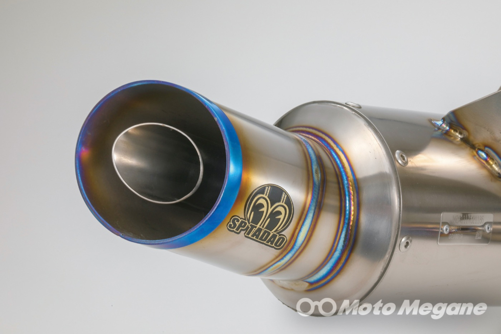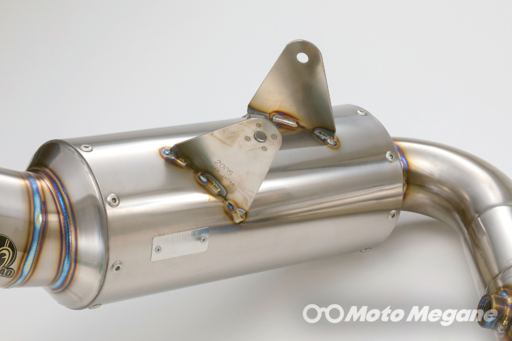 φ38.1mmのエキゾーストパイプ+φ60.5mmの極太テールパイプ、そしてPOWER BOXサイレンサーの各部をチタンで構成する超軽量な同品は、純正スタイルを崩さないショートタイプ。シャープなスラッシュカットデザインのマフラーエンドも迫力だ。