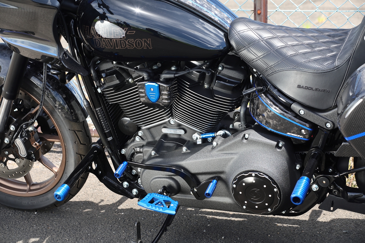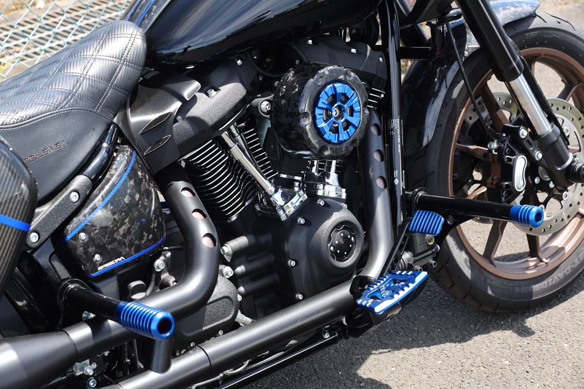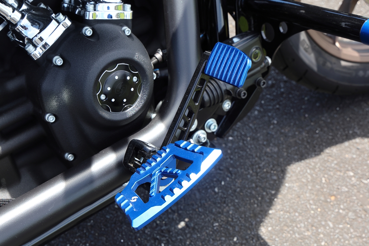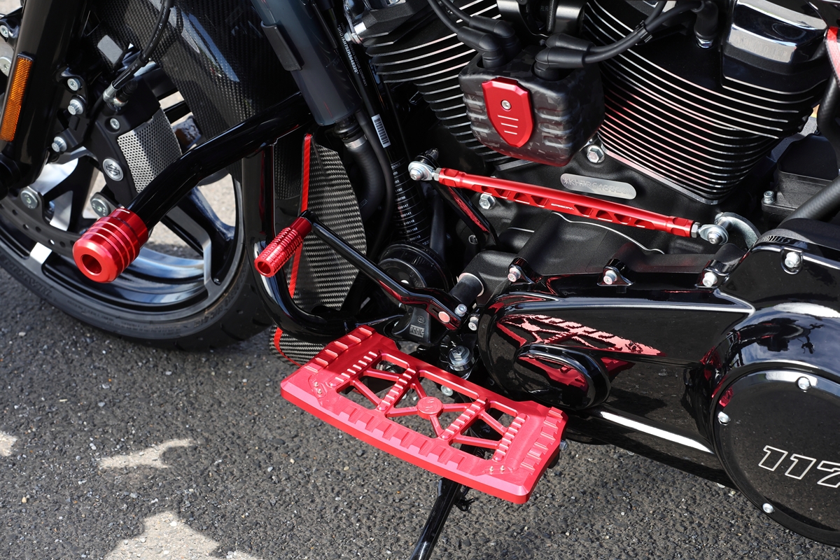 また、ブレーキ/クラッチレバーやシフト、ブレーキなどの操作系パーツには、アルマイト処理が施されたアルミビレットパーツを採用。ロードグライドと同様に「SPEEDRAアジャスタブルレバーセット」が組み込まれており、手の小さいライダーにも対応する設計となっている。