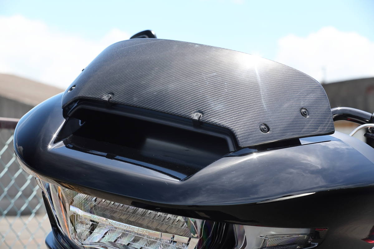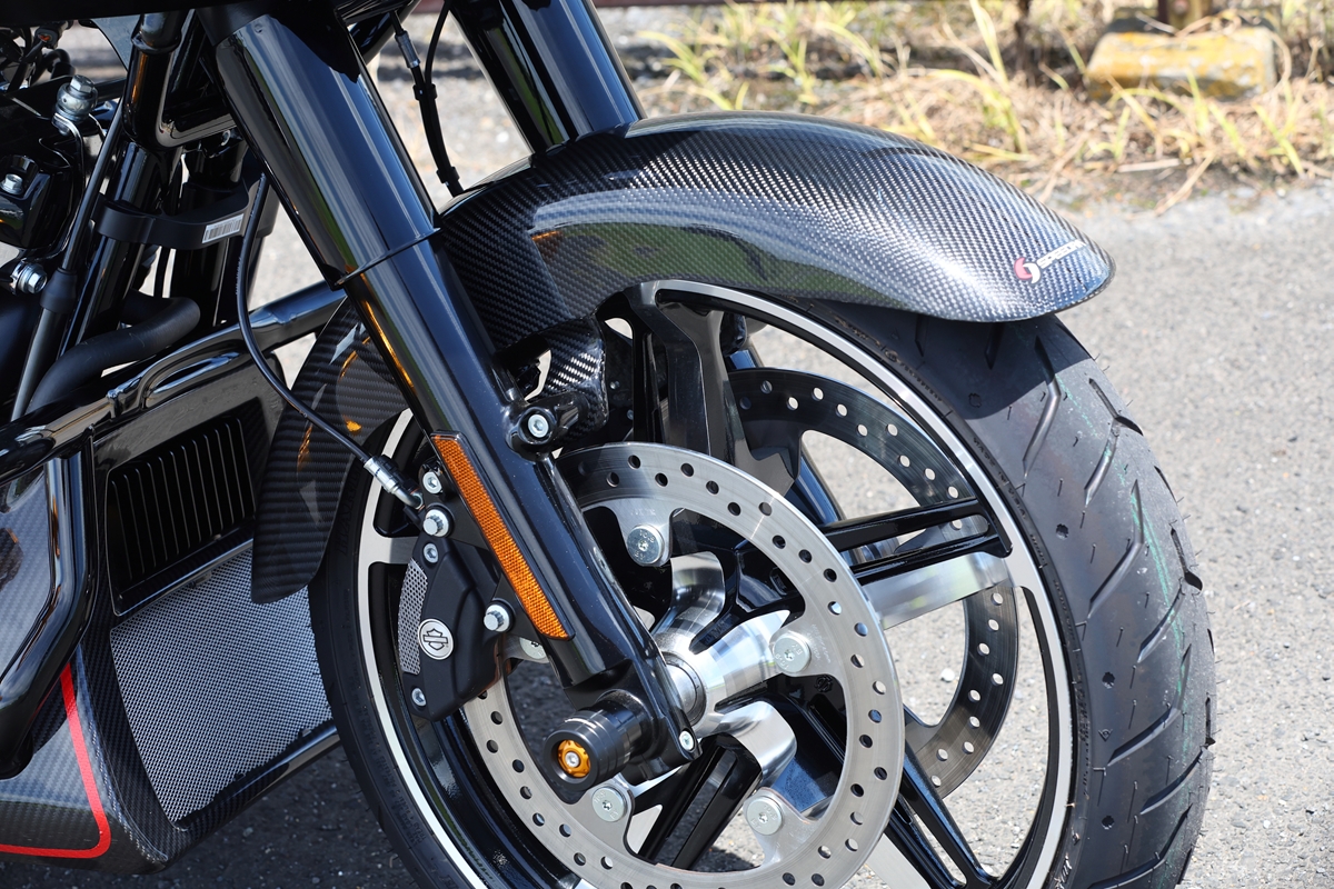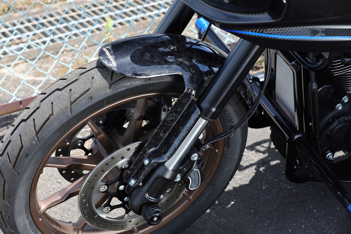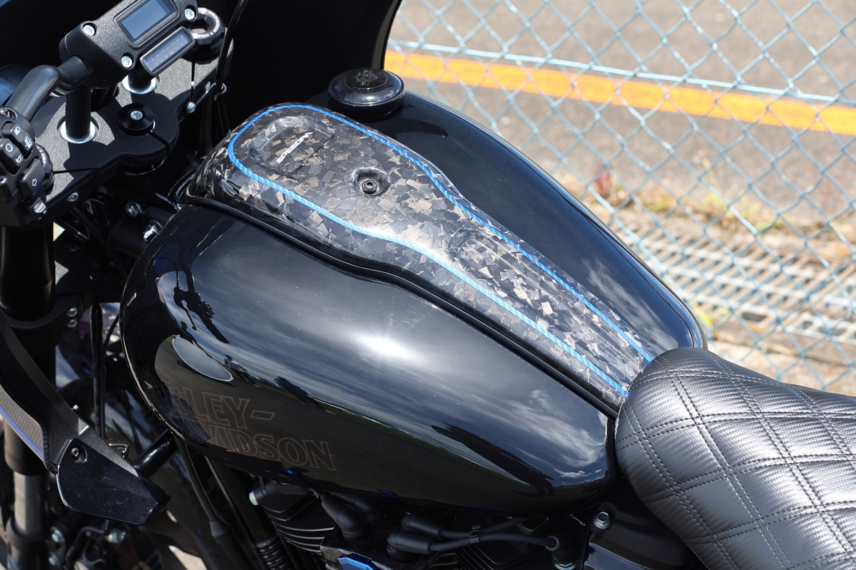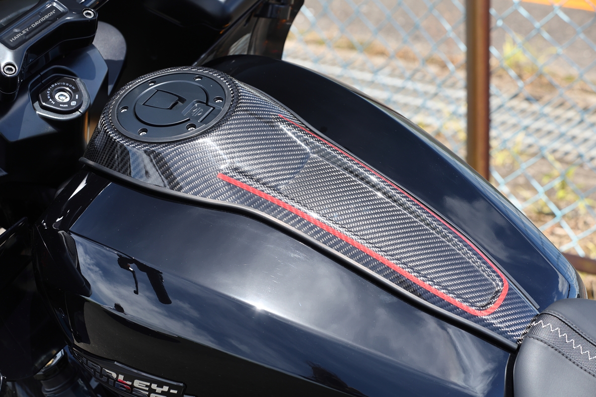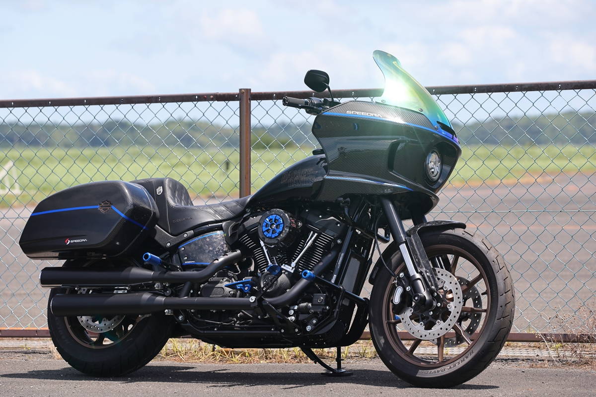 クラブスタイルの要素を取り入れた人気モデル〝ローライダーST〟。ローライダーSTは、FXRTスタイルの大型カウルが特徴的なモデルだが、今回はこの〝顔〟とも言えるカウルをドライカーボン製にアップグレード。